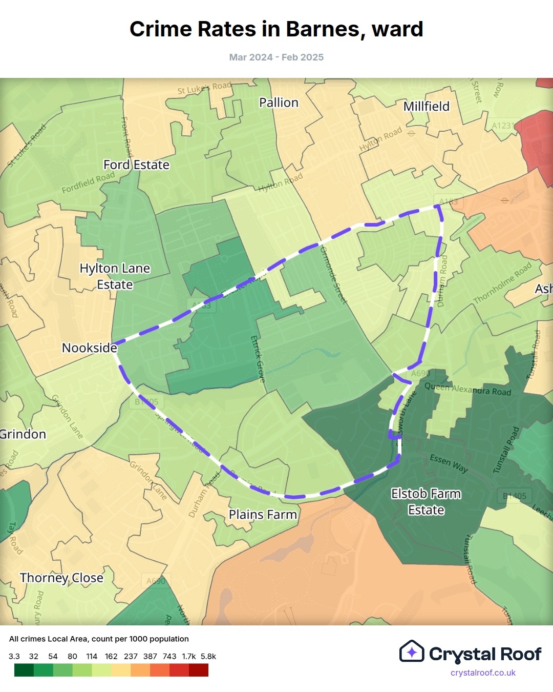 Barnes, (ward) includes areas with the following crime ratings (see map):