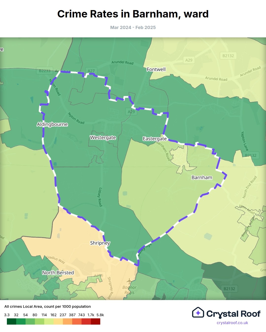 Barnham, (ward) includes areas with the following crime ratings (see map):