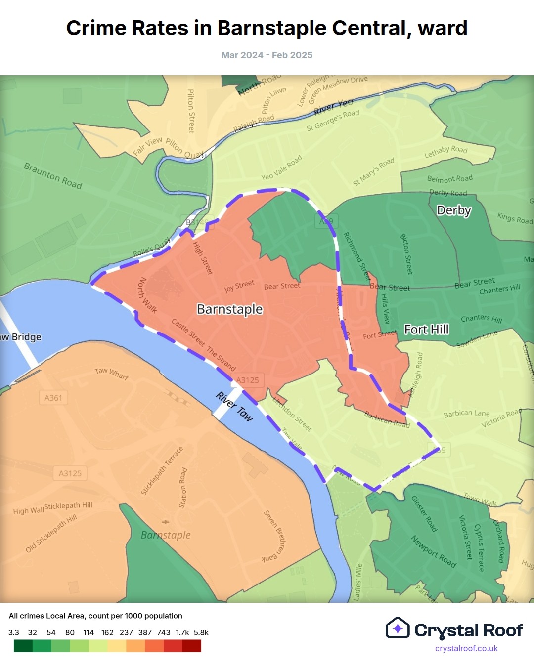 Barnstaple Central, (ward) includes areas with the following crime ratings (see map):