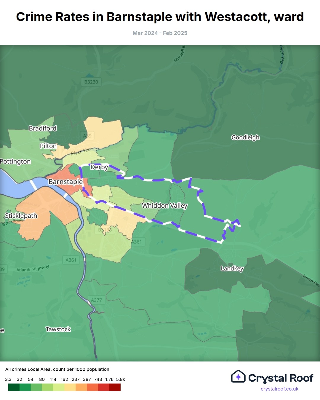 Barnstaple with Westacott, (ward) includes areas with the following crime ratings (see map):