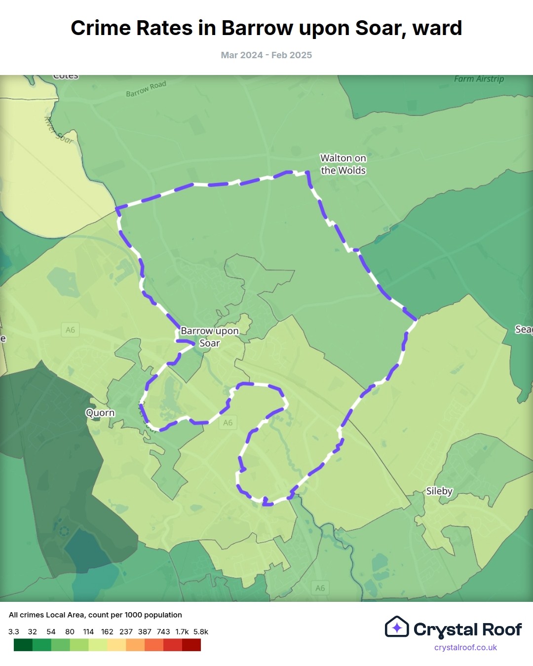 Barrow upon Soar, (ward) includes areas with the following crime ratings (see map):