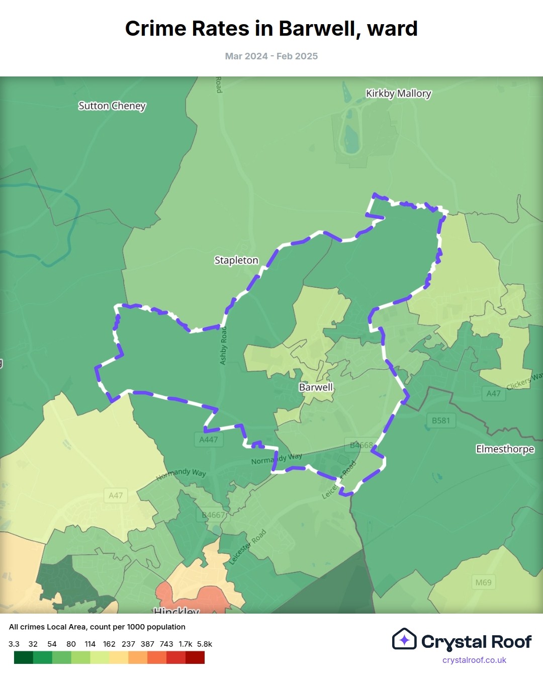 Barwell, (ward) includes areas with the following crime ratings (see map):