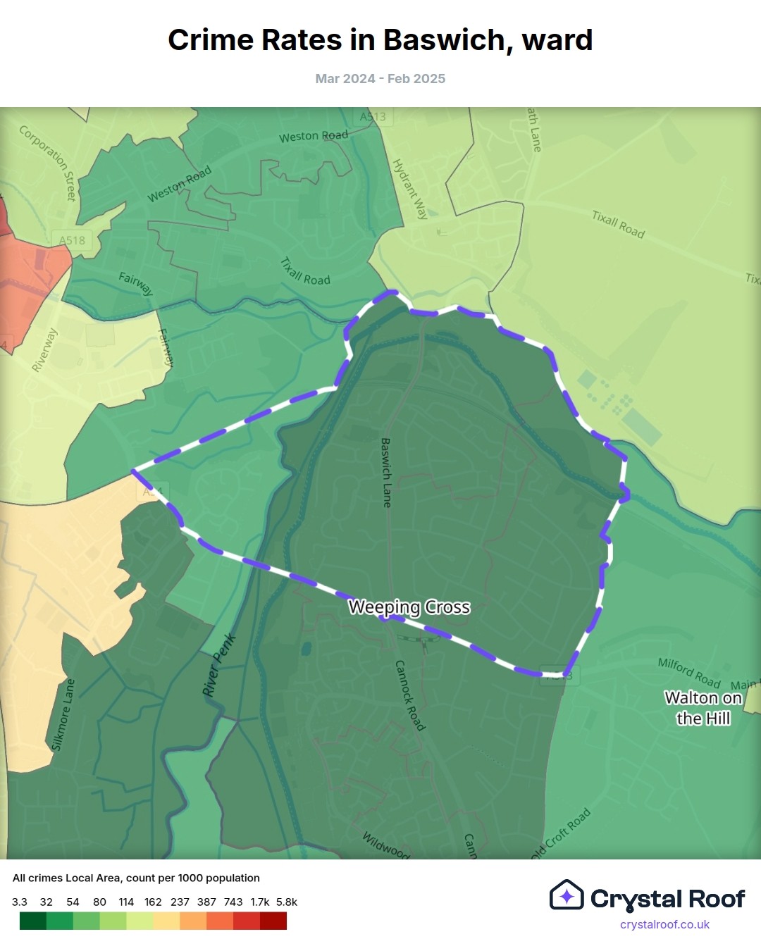 Baswich, (ward) includes areas with the following crime ratings (see map):