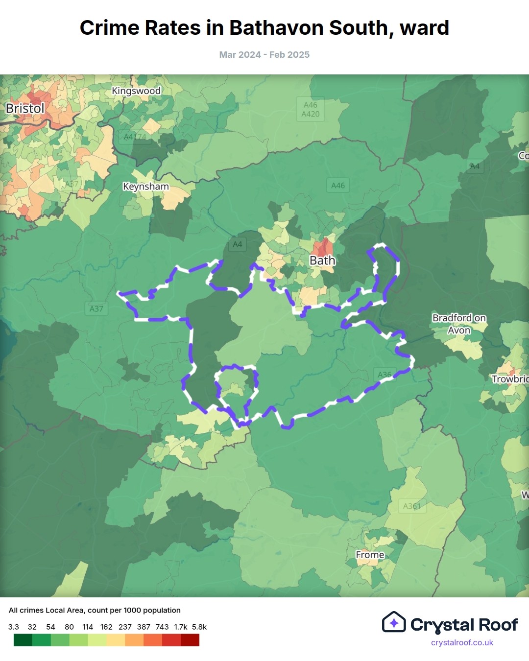 Bathavon South, (ward) includes areas with the following crime ratings (see map):