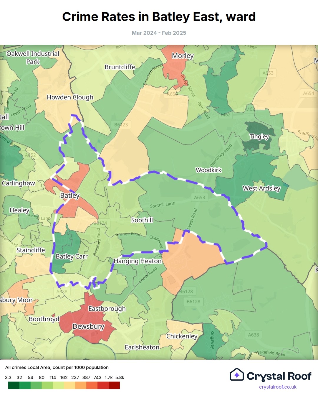 Batley East, (ward) includes areas with the following crime ratings (see map):