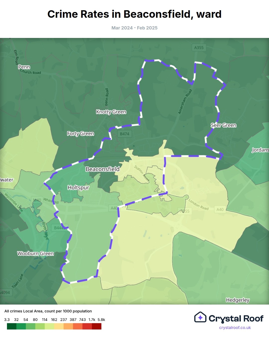 Beaconsfield, (ward) includes areas with the following crime ratings (see map):