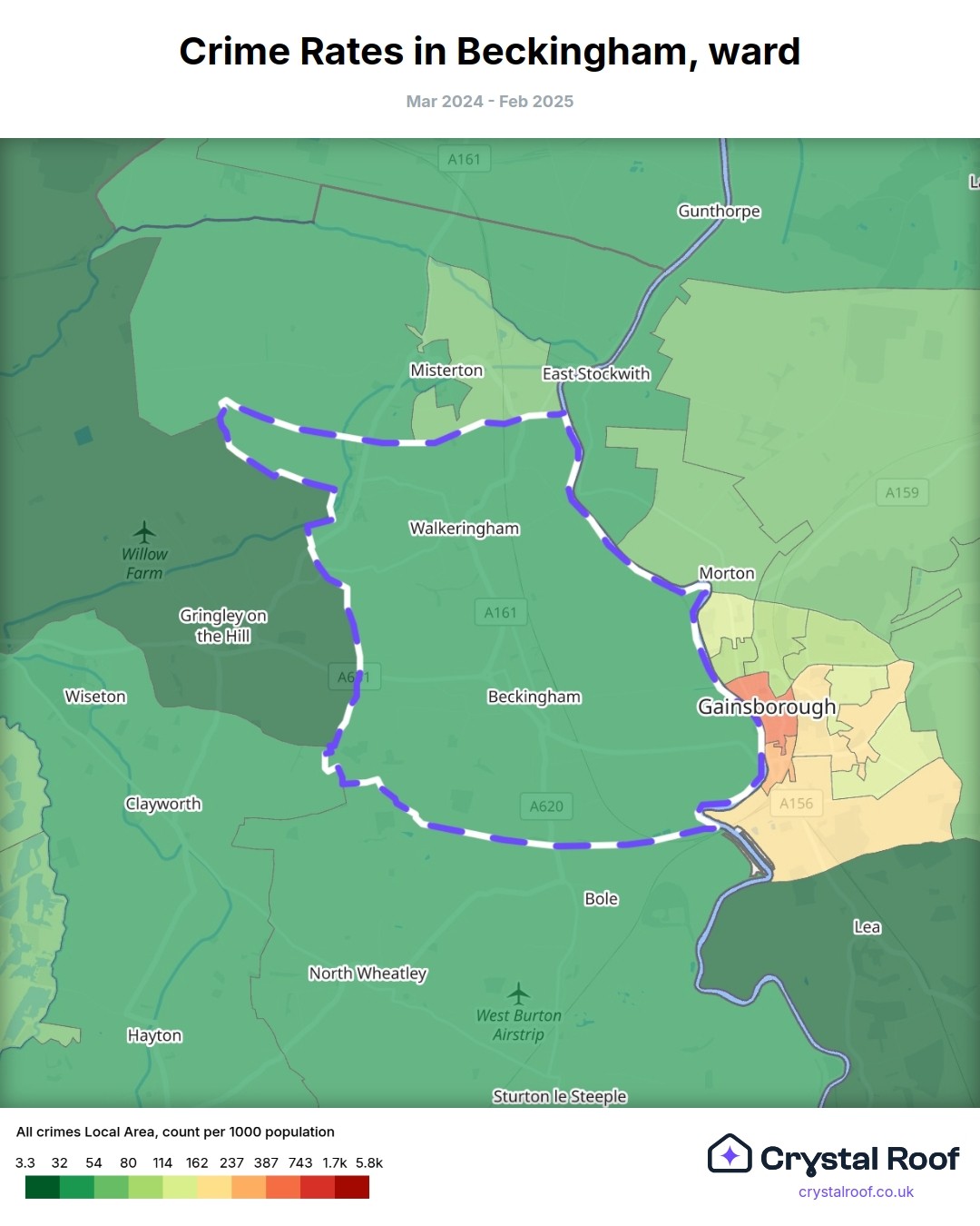 Beckingham, (ward) includes areas with the following crime ratings (see map):