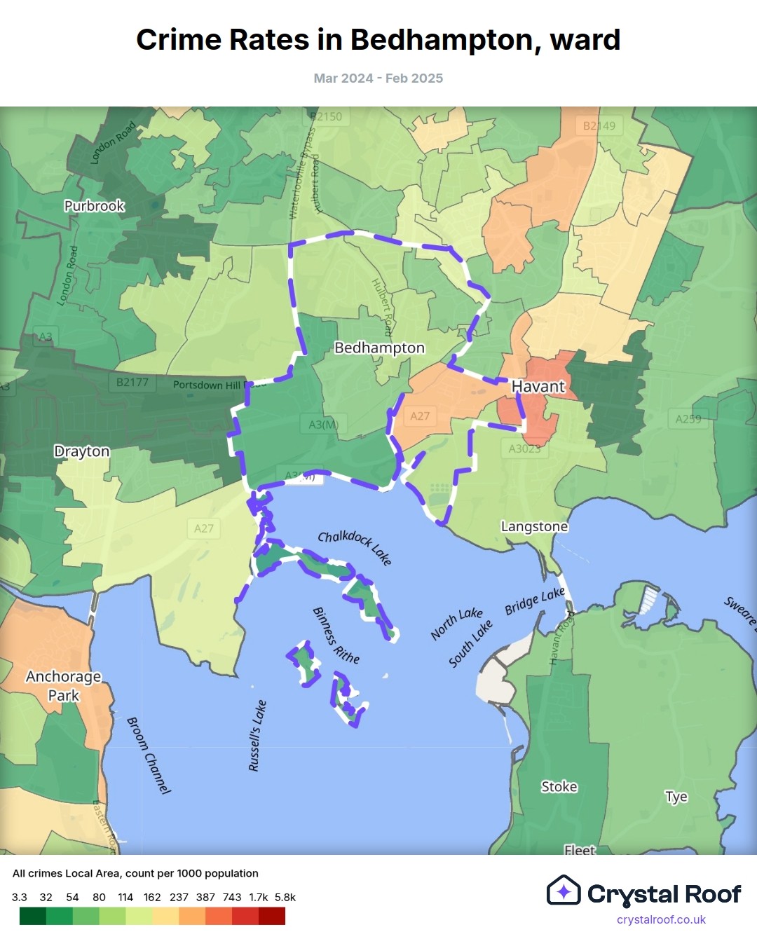 Bedhampton, (ward) includes areas with the following crime ratings (see map):