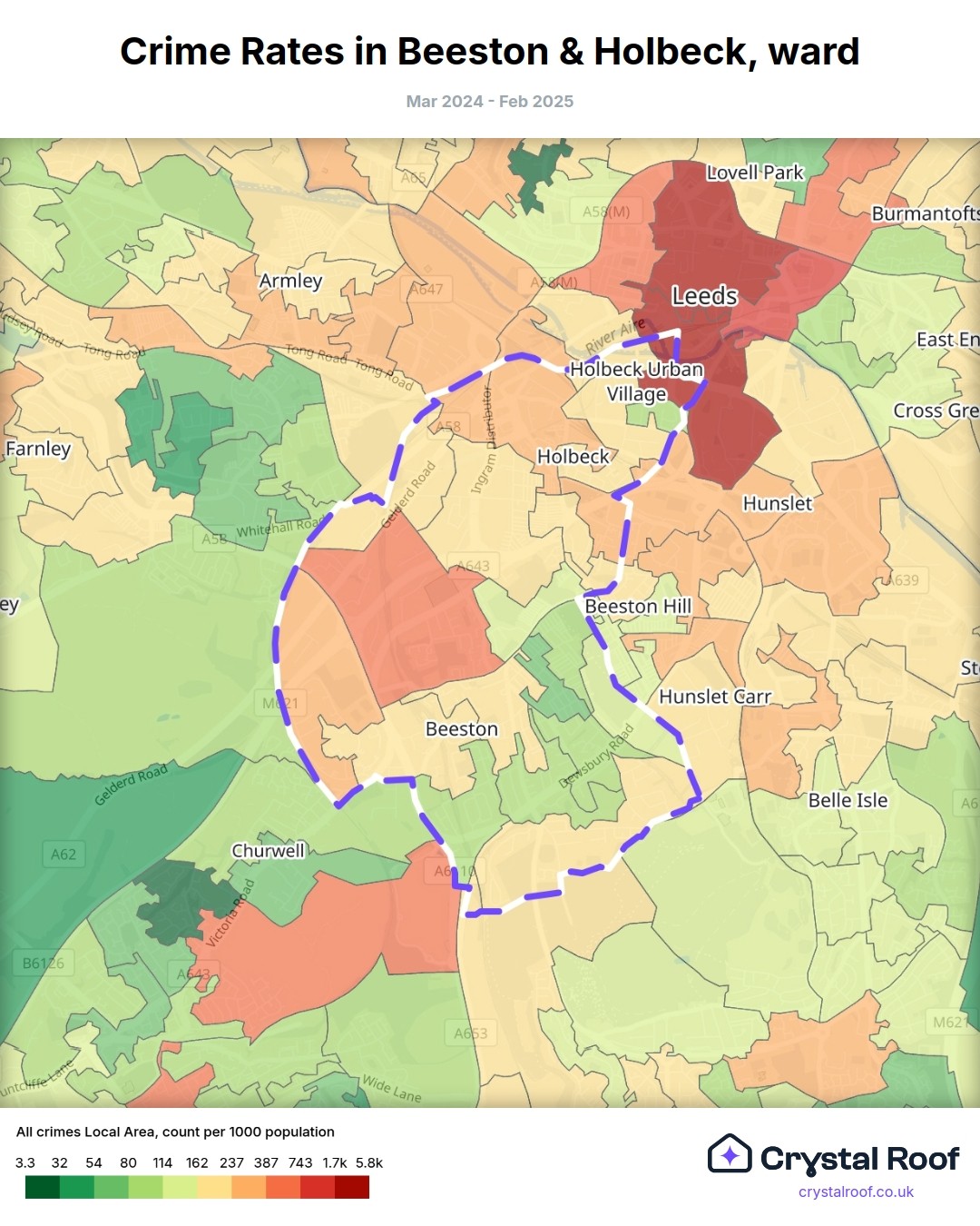 Beeston & Holbeck, (ward) includes areas with the following crime ratings (see map):