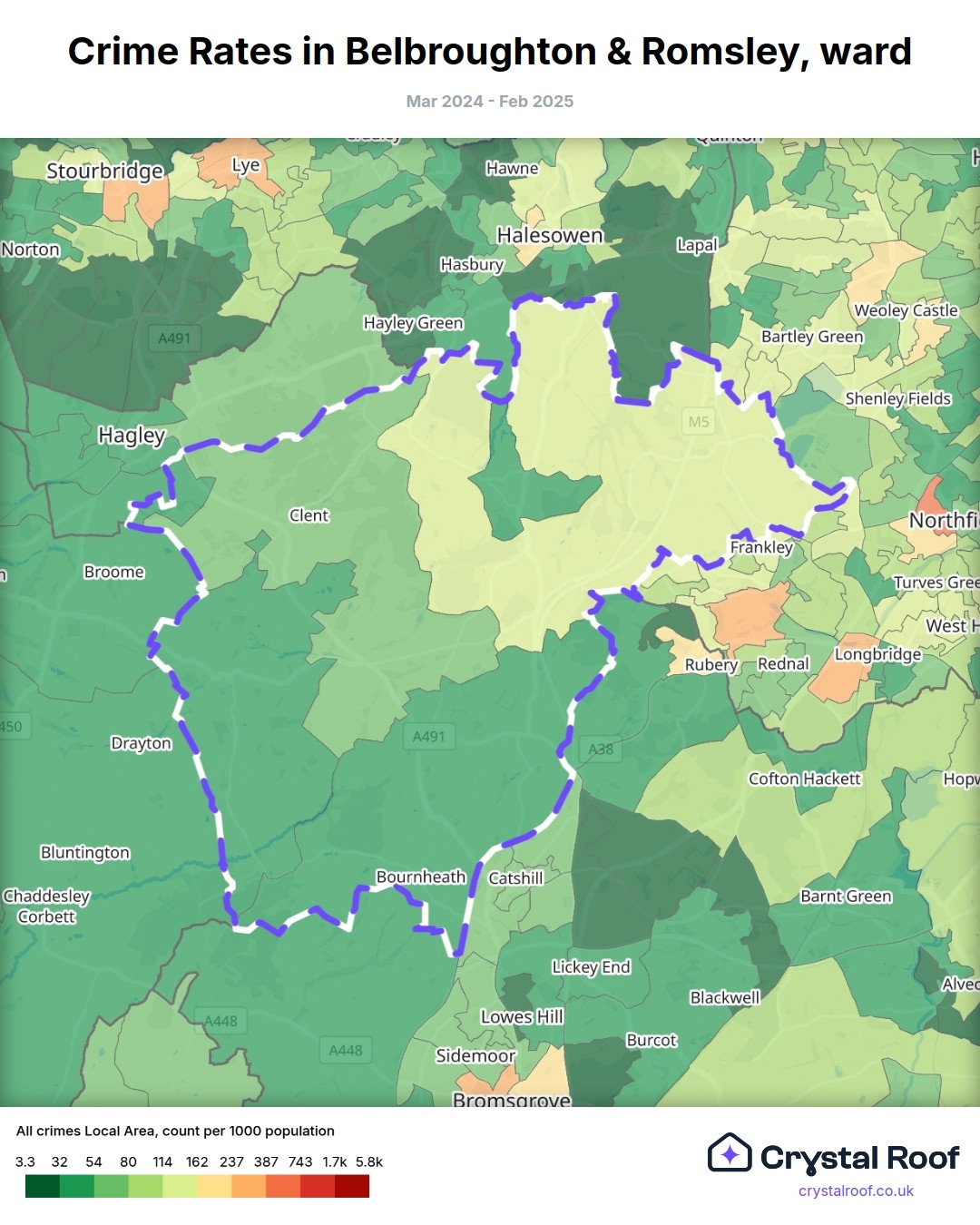 Belbroughton & Romsley, (ward) includes areas with the following crime ratings (see map):