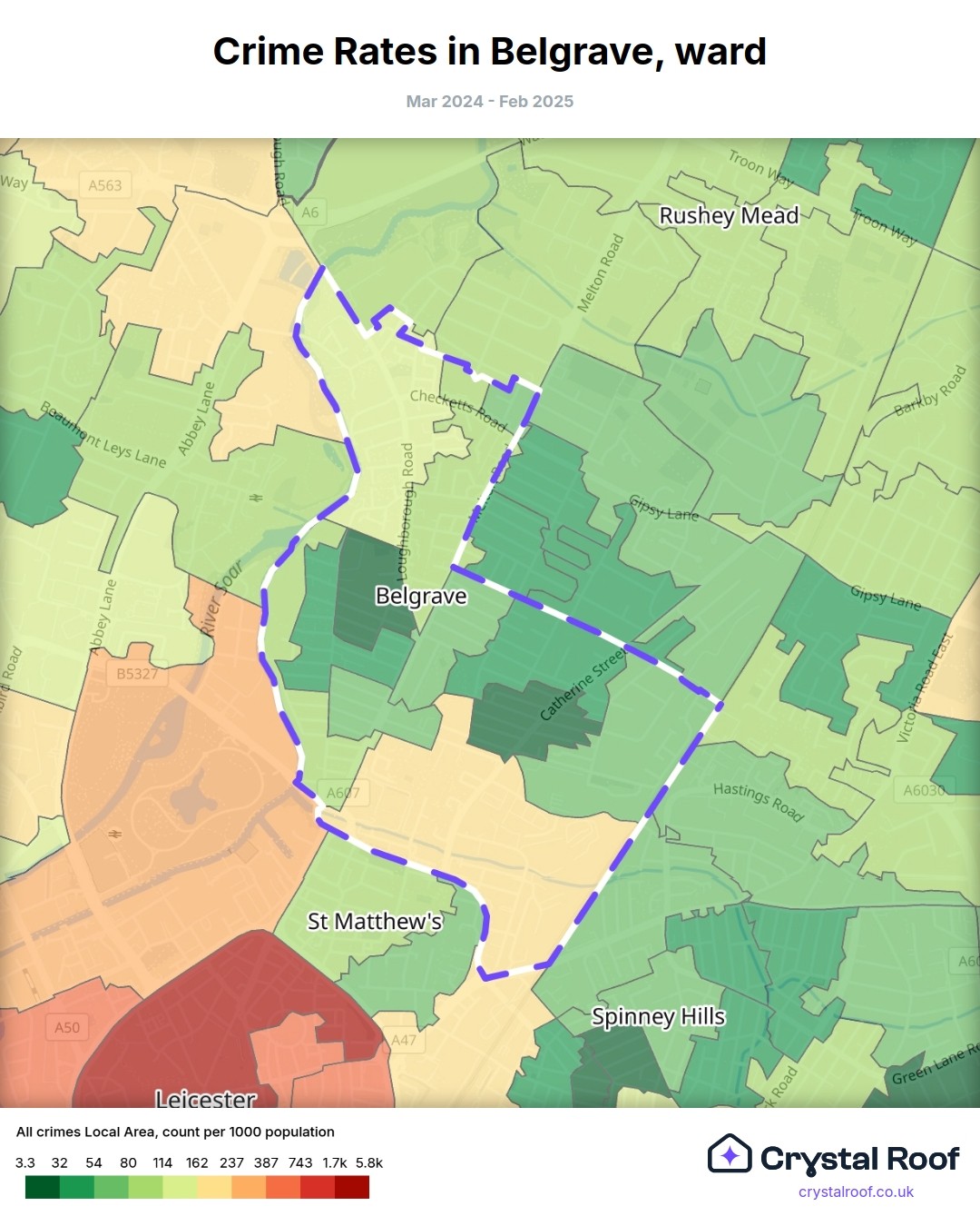 Belgrave, (ward) includes areas with the following crime ratings (see map):