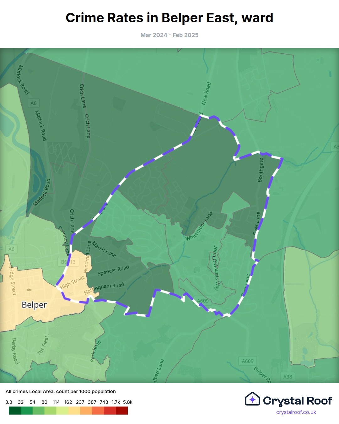 Belper East, (ward) includes areas with the following crime ratings (see map):