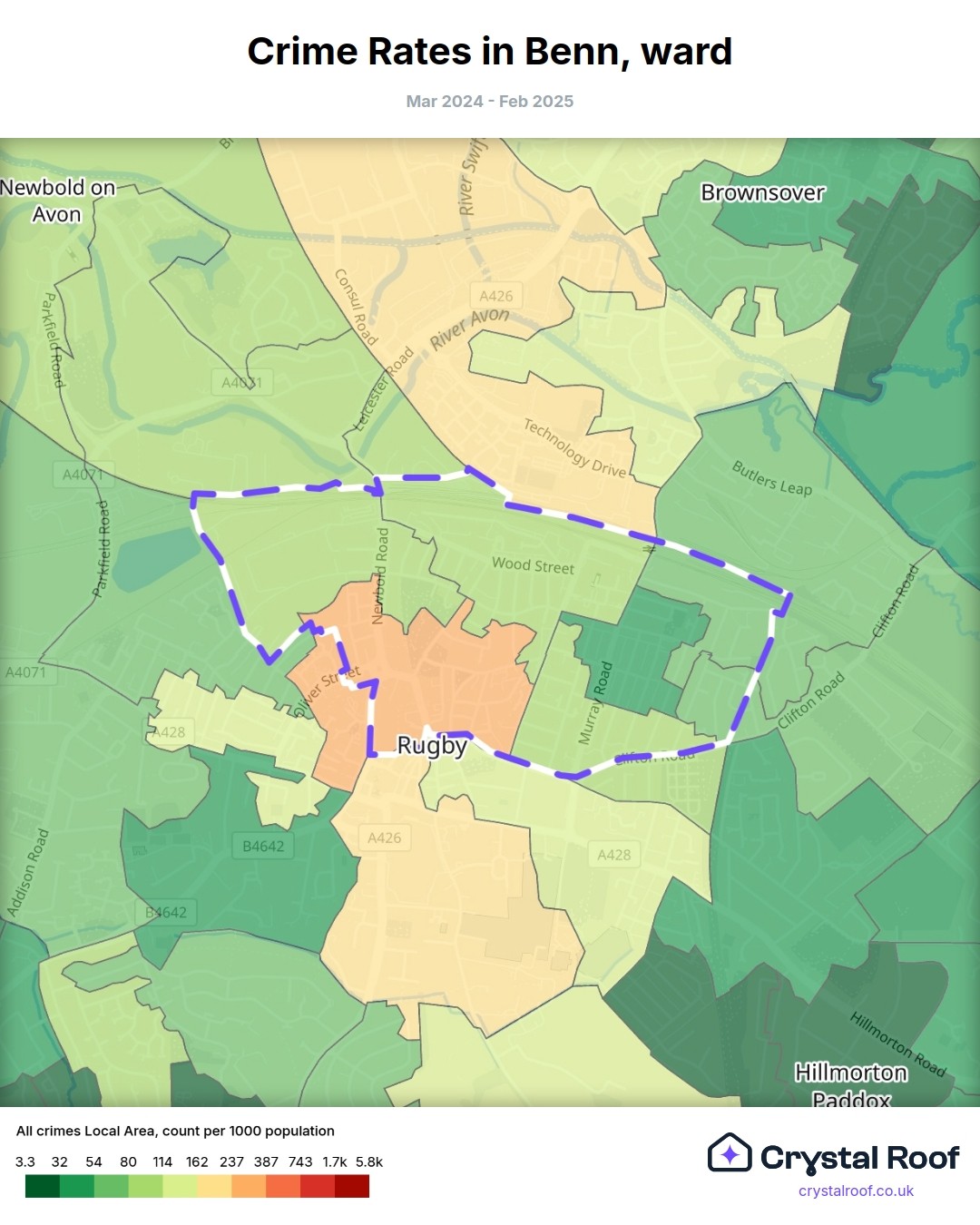 Benn, (ward) includes areas with the following crime ratings (see map):