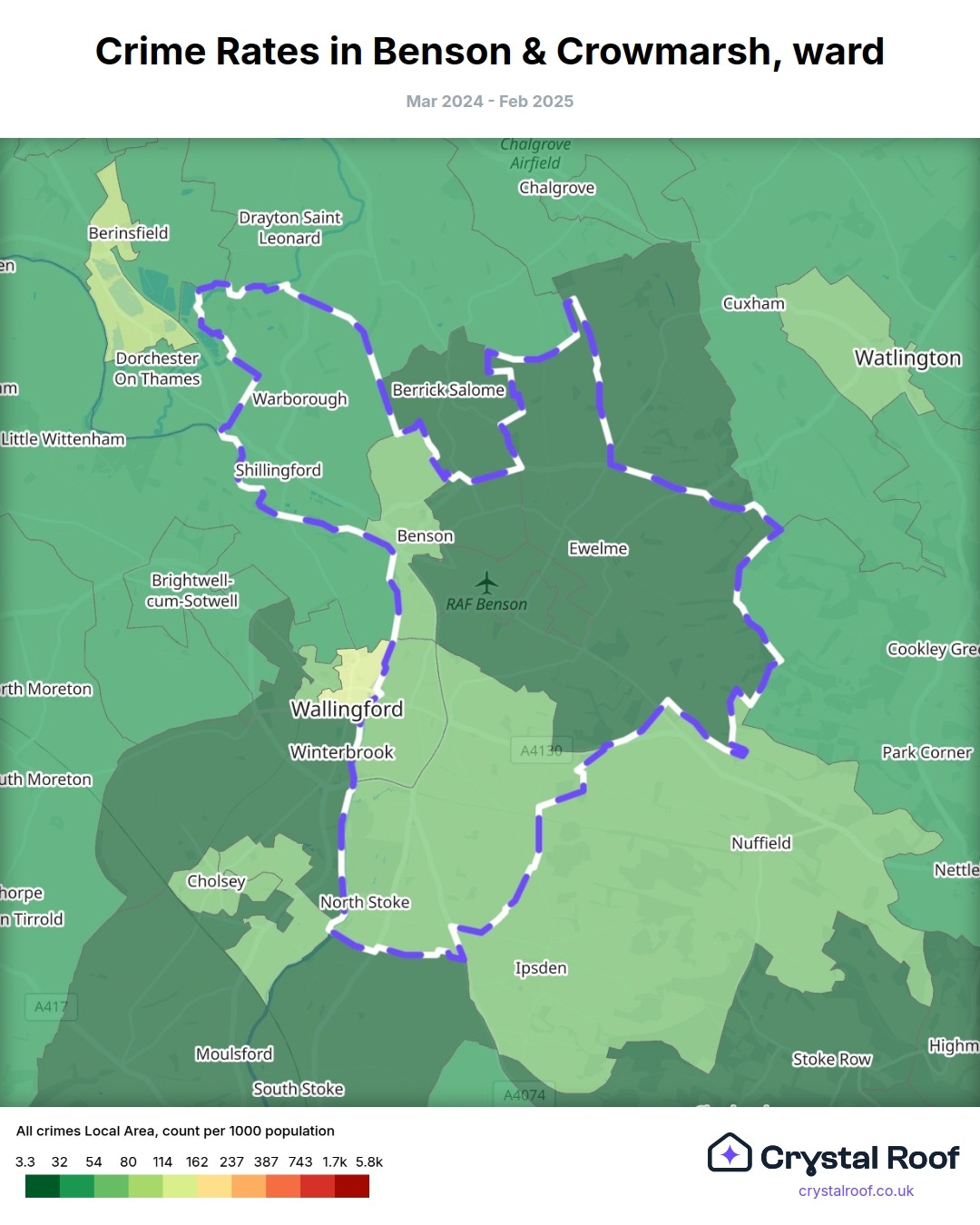 Benson & Crowmarsh, (ward) includes areas with the following crime ratings (see map):