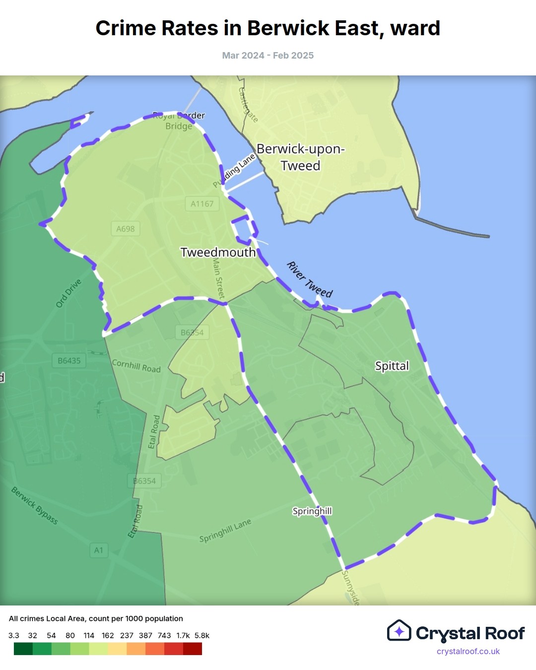 Berwick East, (ward) includes areas with the following crime ratings (see map):