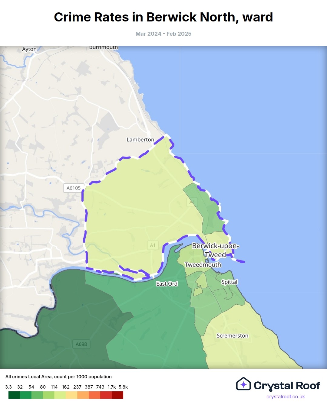 Berwick North, (ward) includes areas with the following crime ratings (see map):