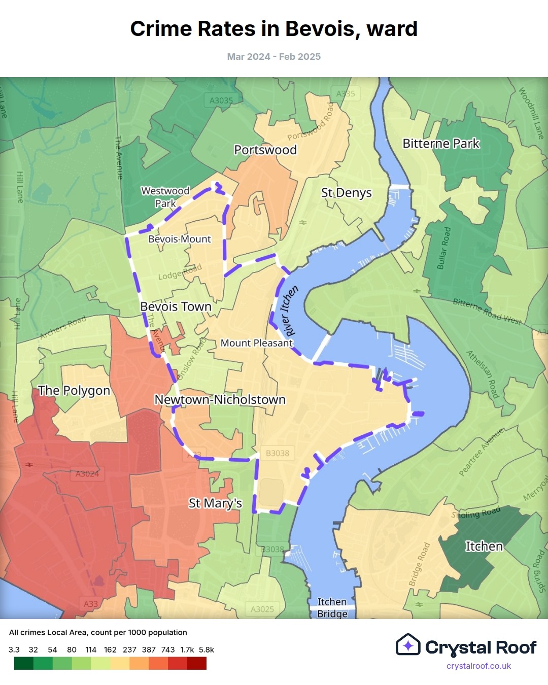 Bevois, (ward) includes areas with the following crime ratings (see map):