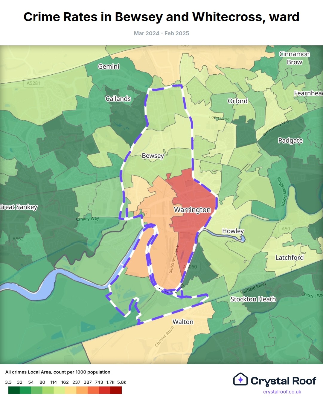Bewsey and Whitecross, (ward) includes areas with the following crime ratings (see map):
