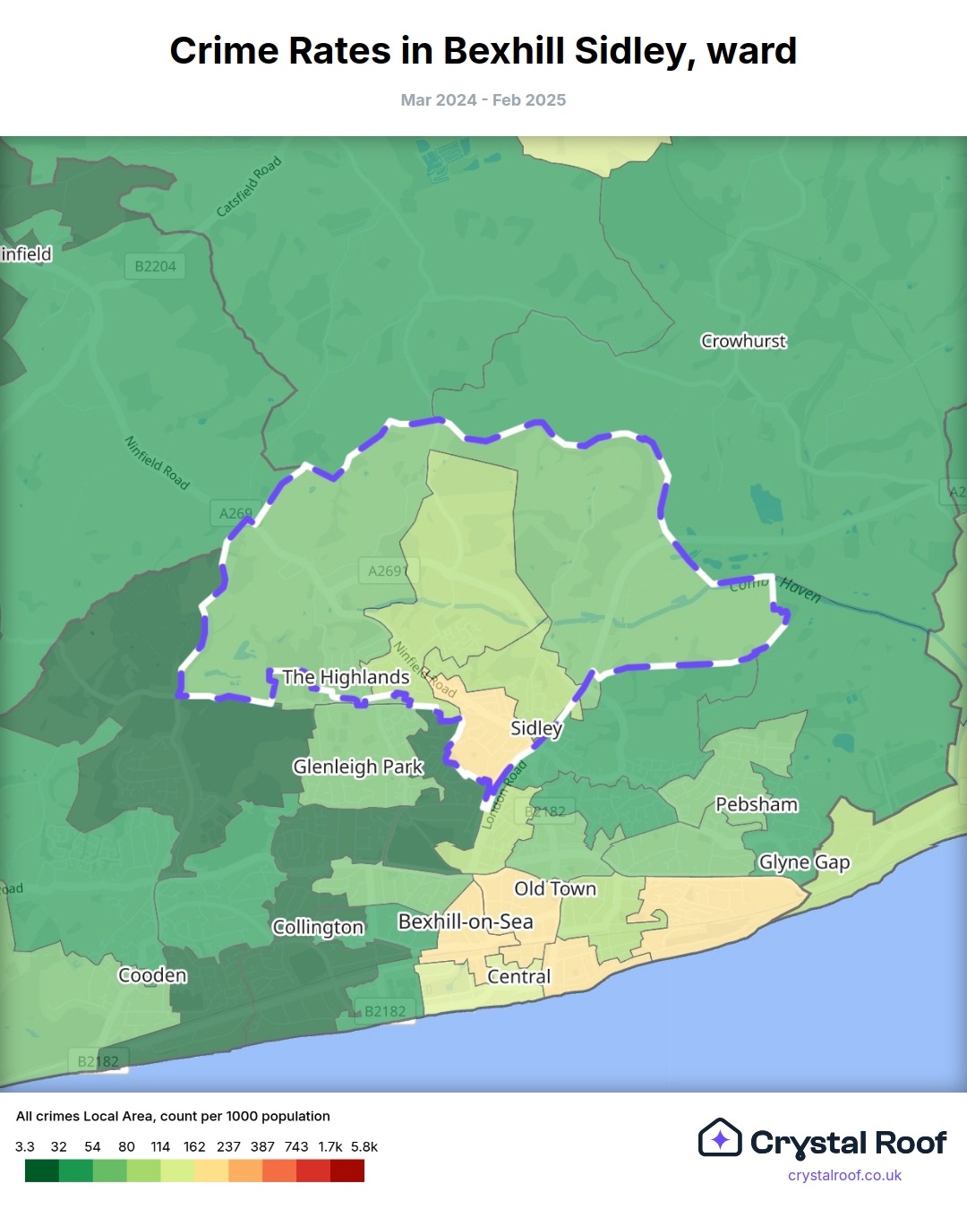 Bexhill Sidley, (ward) includes areas with the following crime ratings (see map):