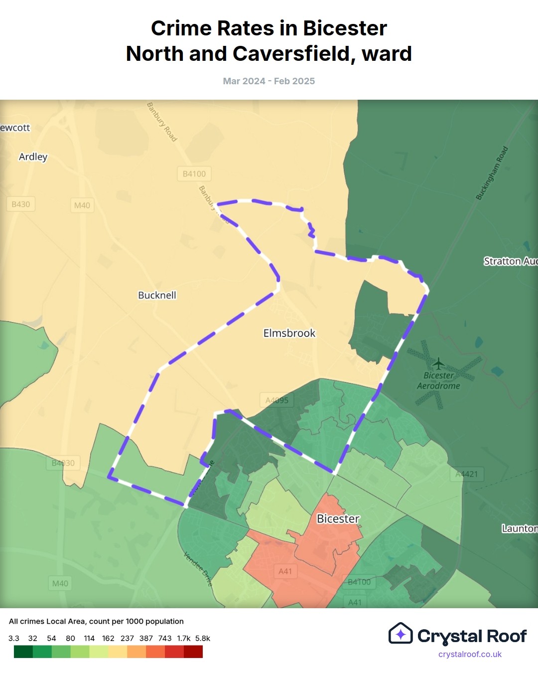 Bicester North and Caversfield, (ward) includes areas with the following crime ratings (see map):
