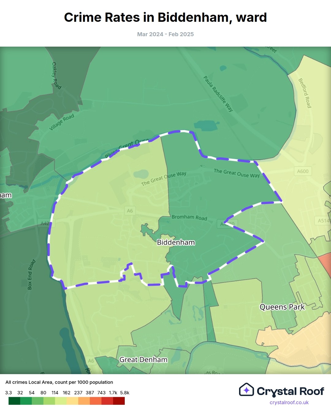 Biddenham, (ward) includes areas with the following crime ratings (see map):