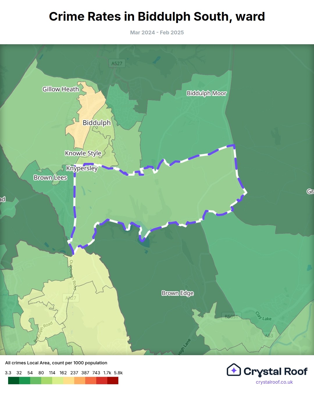 Biddulph South, (ward) includes areas with the following crime ratings (see map):