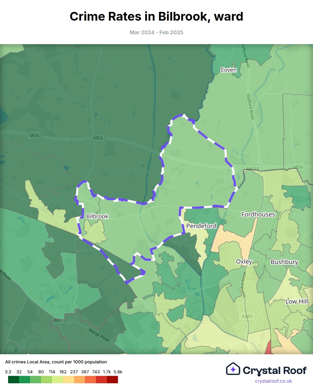 Bilbrook, (ward) includes areas with the following crime ratings (see map):