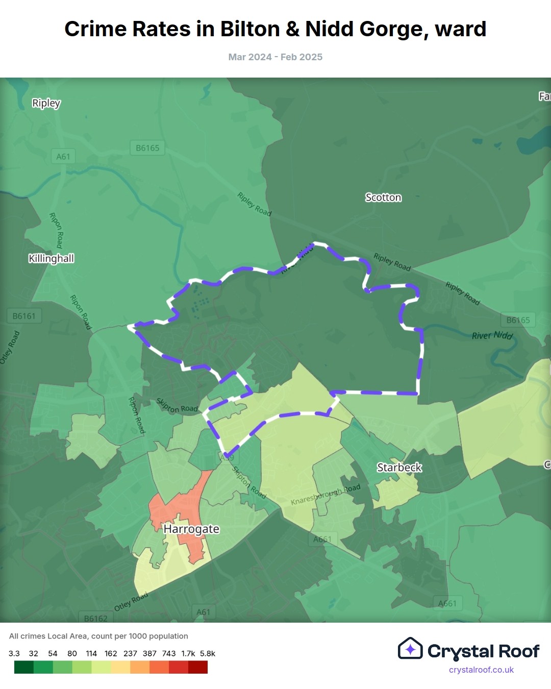 Bilton & Nidd Gorge, (ward) includes areas with the following crime ratings (see map):