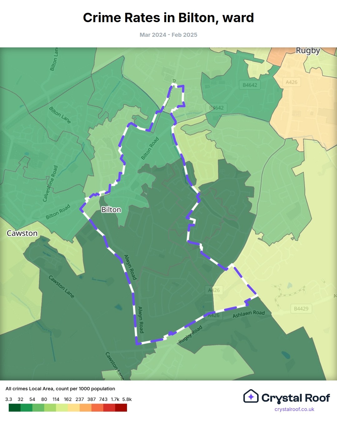 Bilton, (ward) includes areas with the following crime ratings (see map):