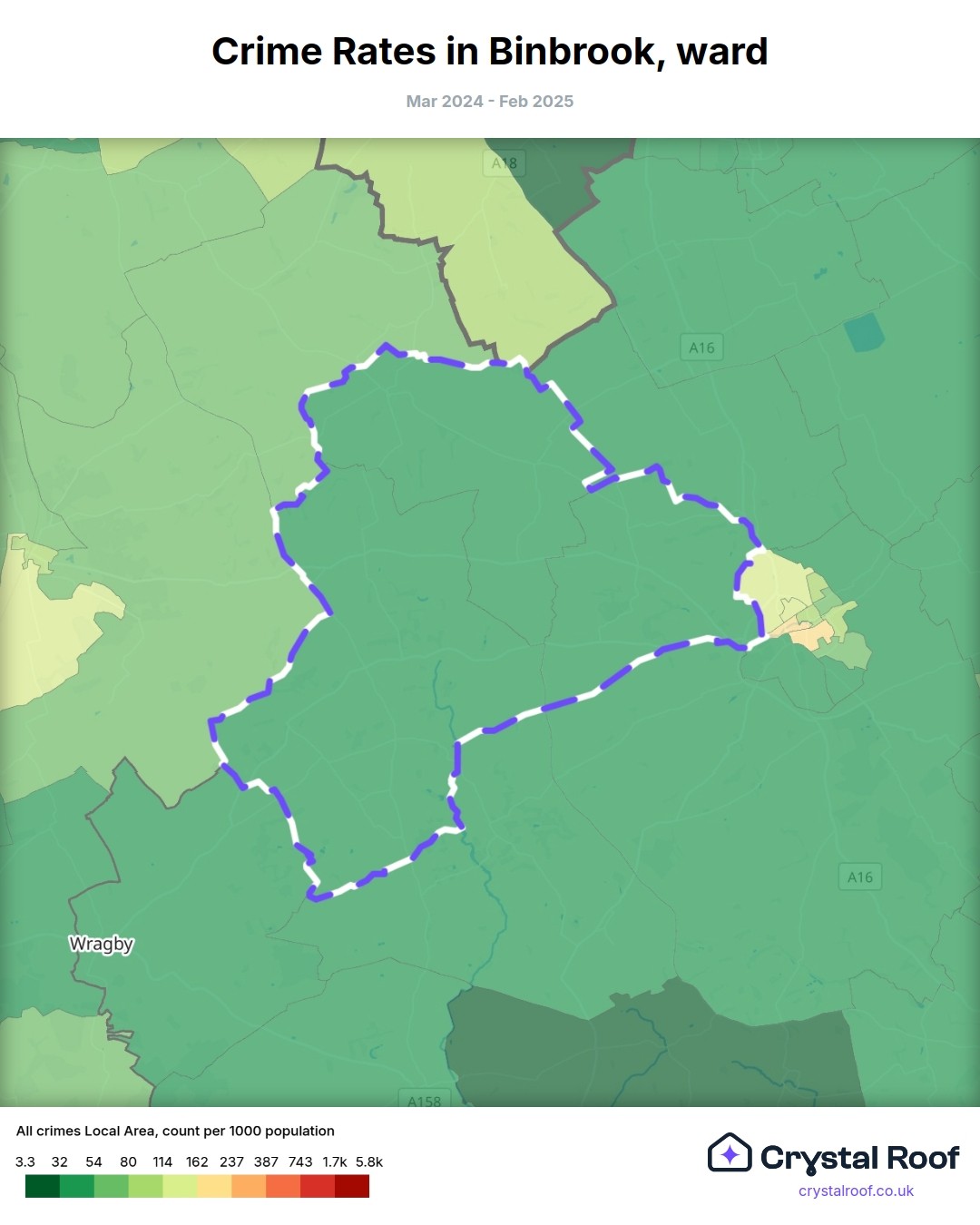 Binbrook, (ward) includes areas with the following crime ratings (see map):