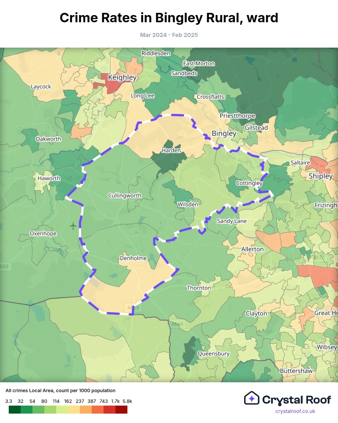 Bingley Rural, (ward) includes areas with the following crime ratings (see map):