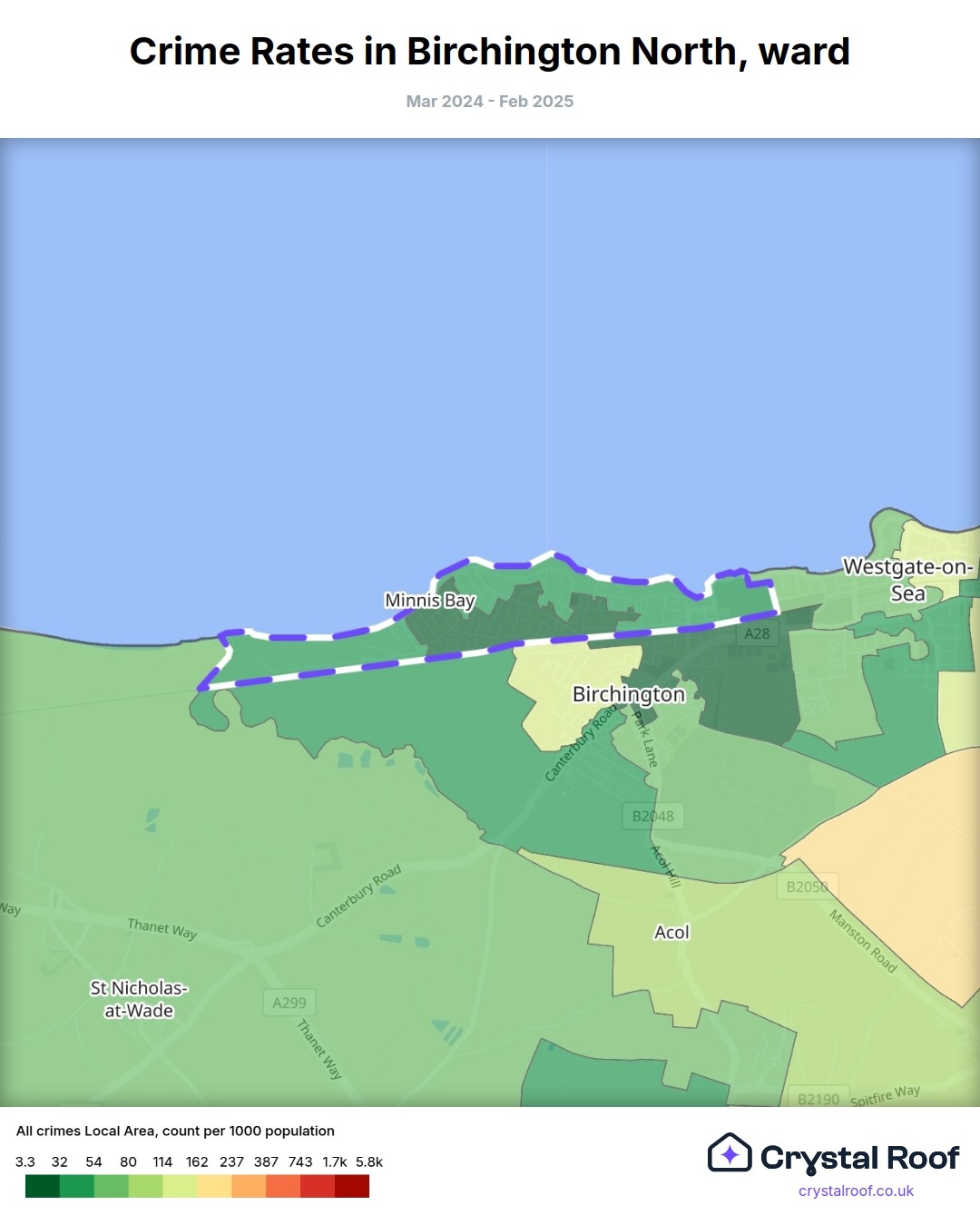 Birchington North, (ward) includes areas with the following crime ratings (see map):