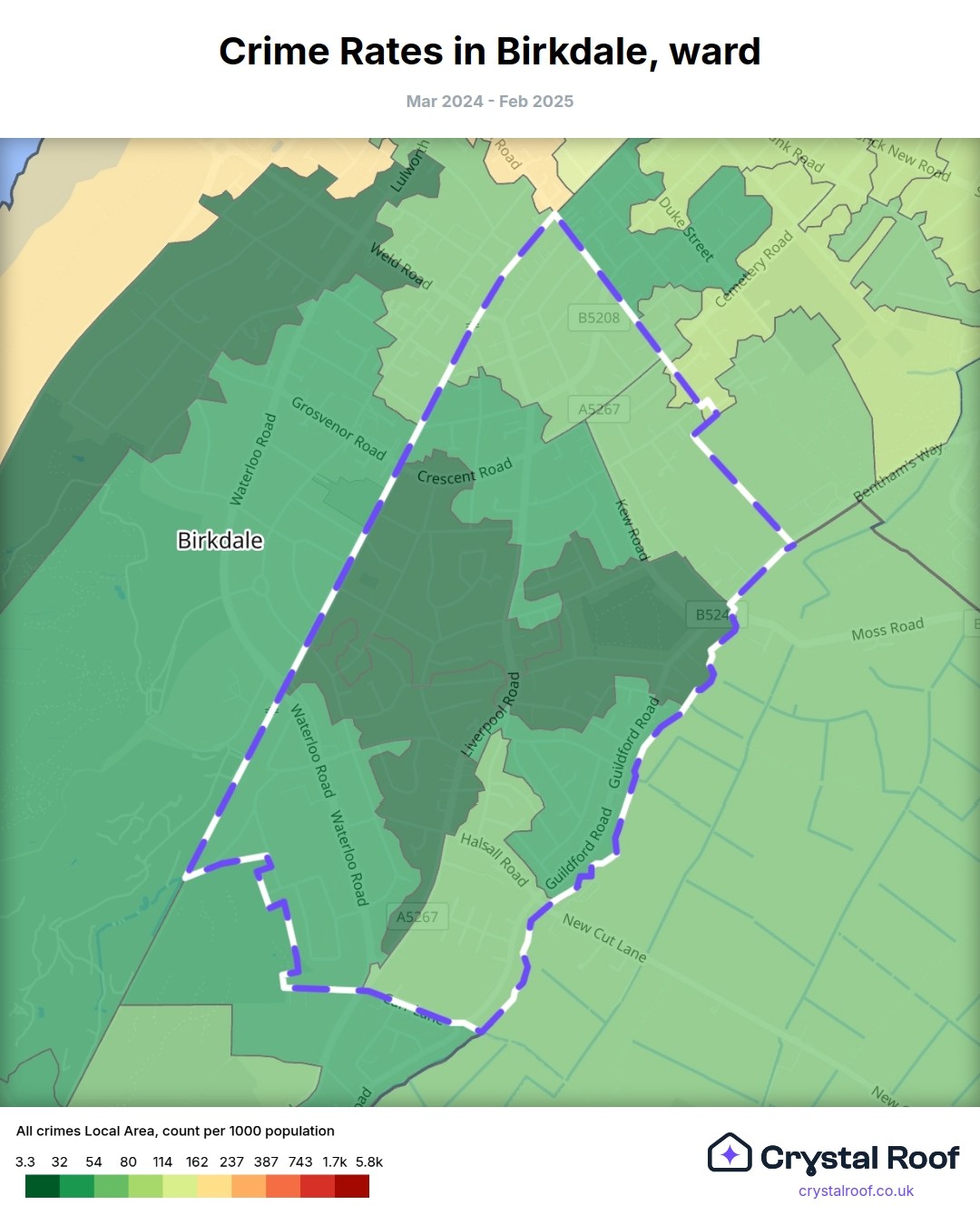 Birkdale, (ward) includes areas with the following crime ratings (see map):