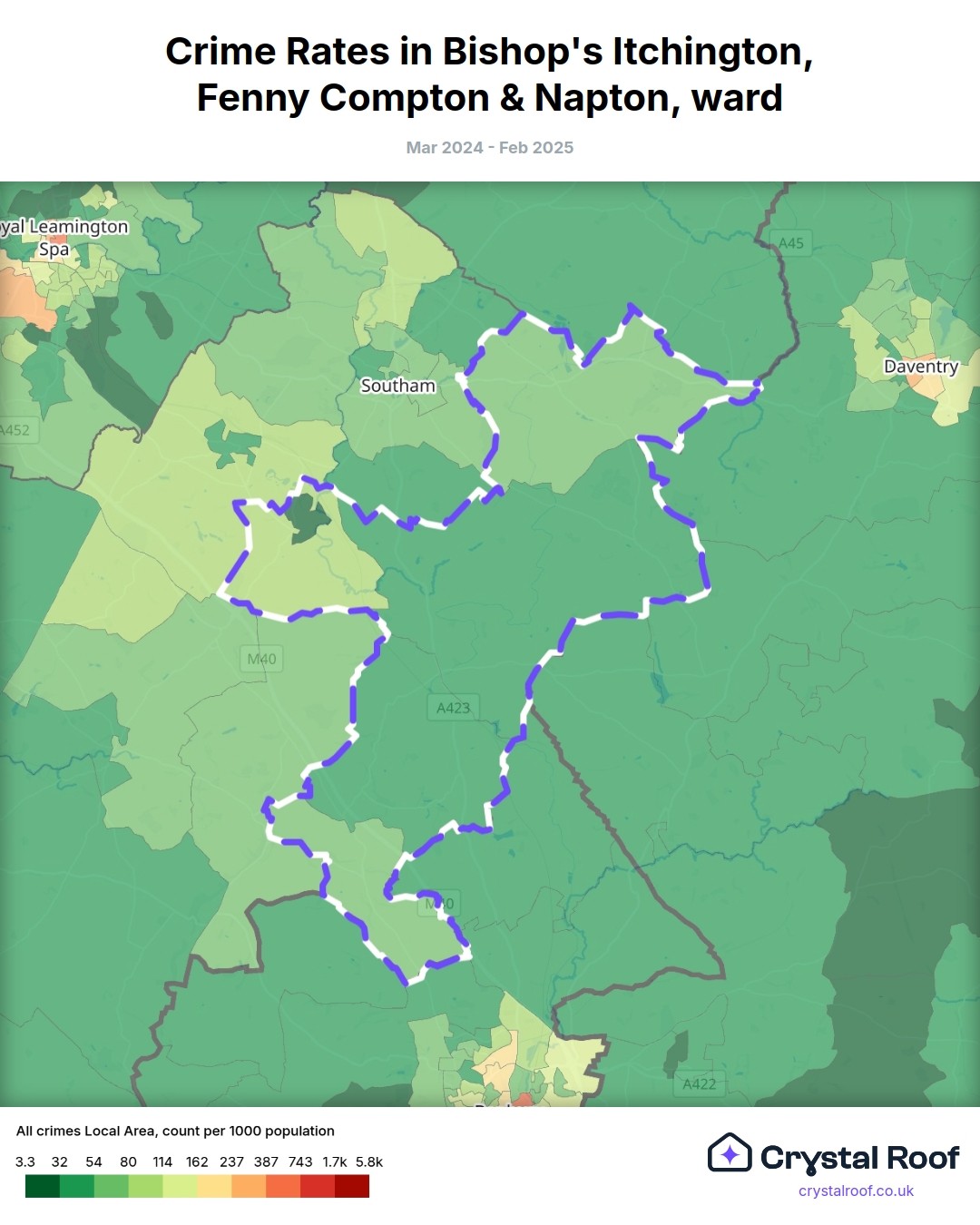 Bishop's Itchington, Fenny Compton & Napton, (ward) includes areas with the following crime ratings (see map):