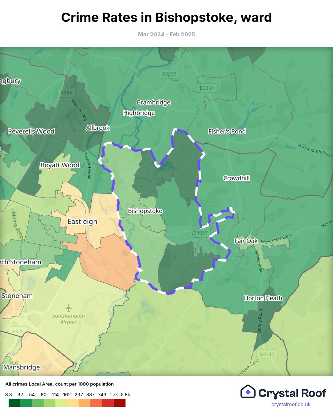 Bishopstoke, (ward) includes areas with the following crime ratings (see map):
