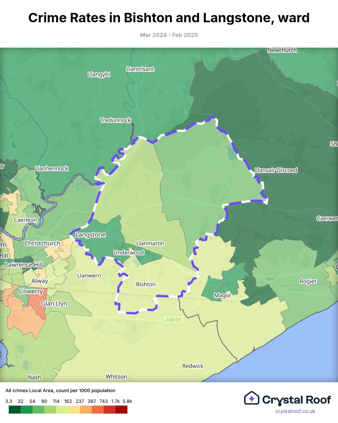 Bishton and Langstone, (ward) includes areas with the following crime ratings (see map):