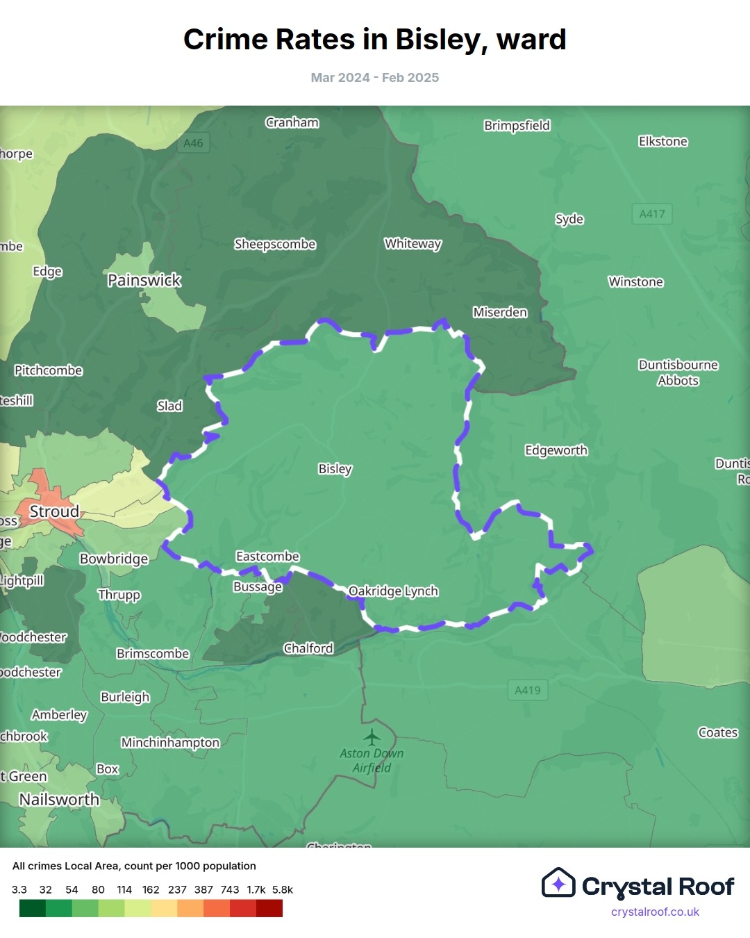 Bisley, (ward) includes areas with the following crime ratings (see map):