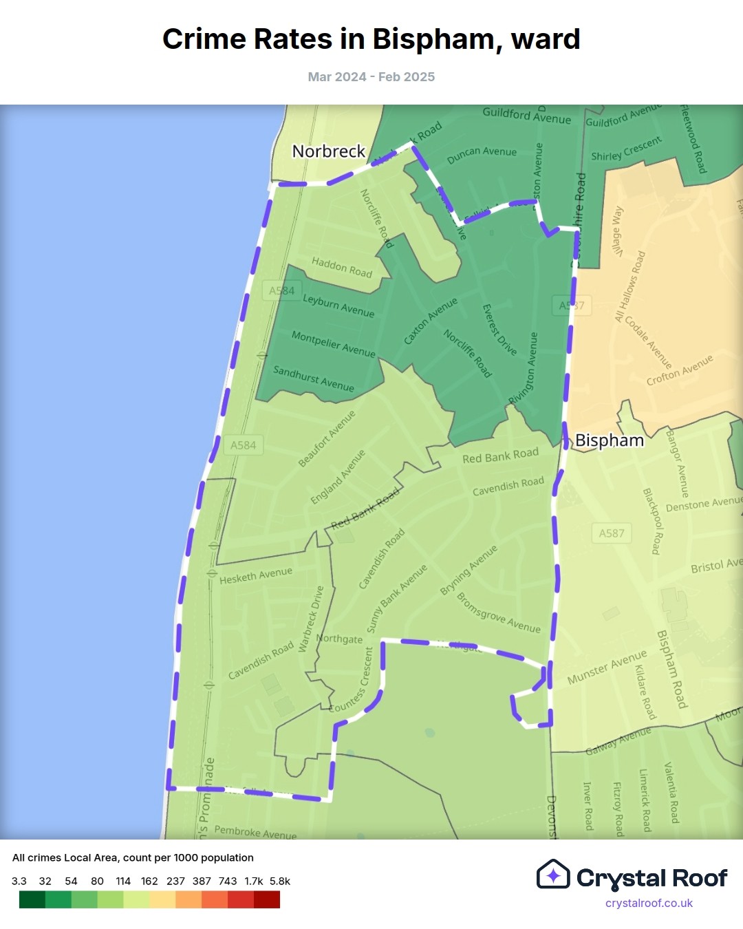 Bispham, (ward) includes areas with the following crime ratings (see map):