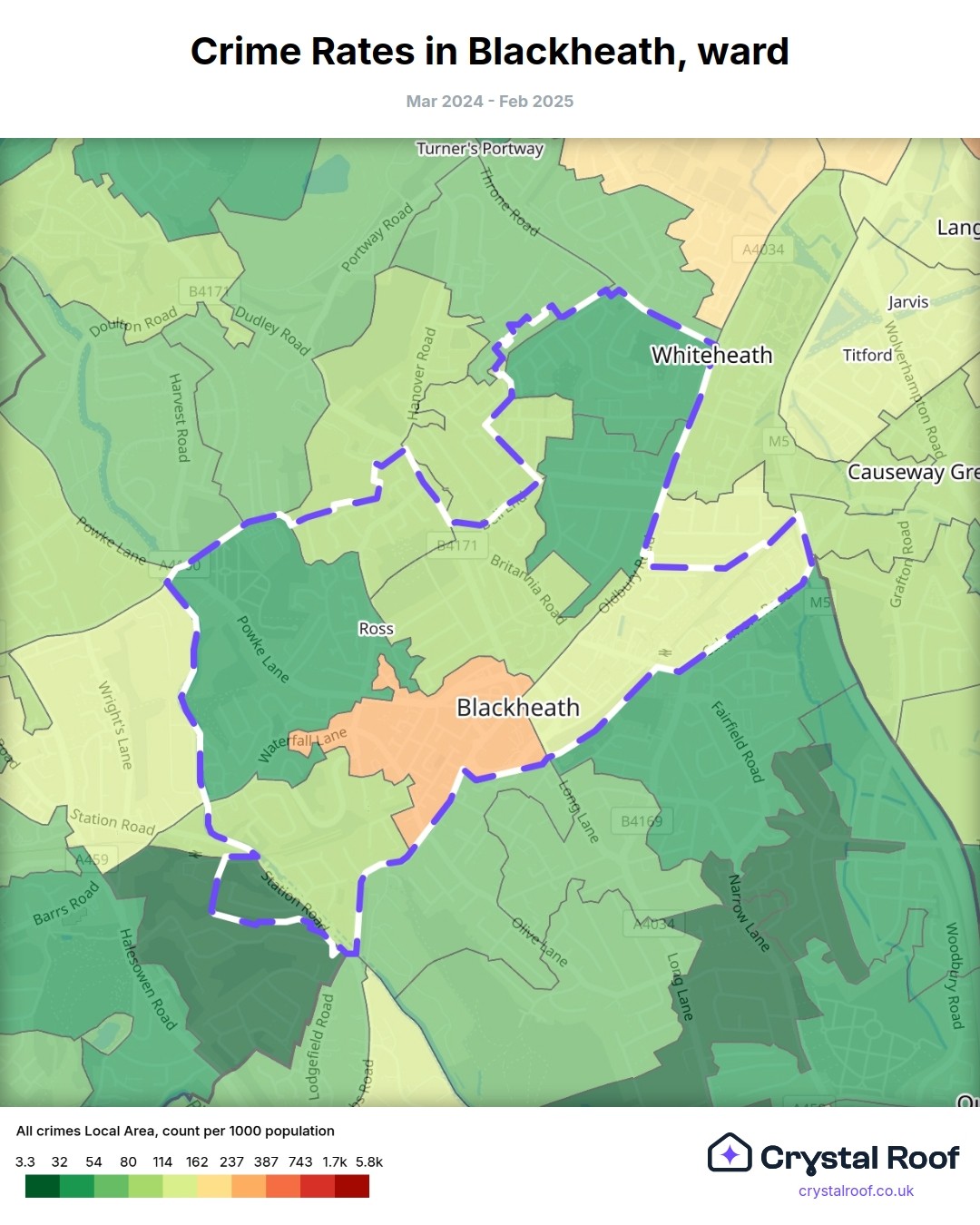 Blackheath, (ward) includes areas with the following crime ratings (see map):