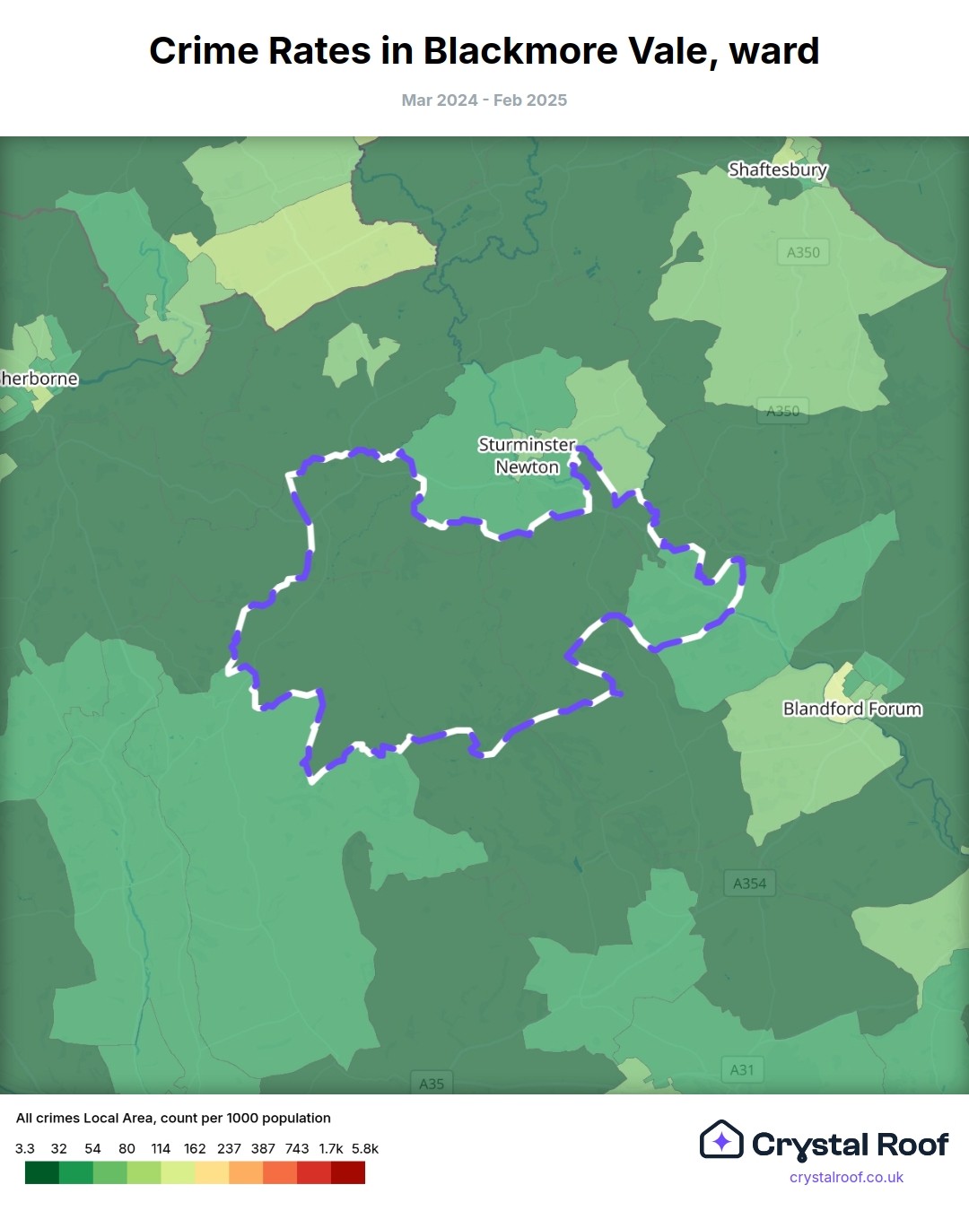 Blackmore Vale, (ward) includes areas with the following crime ratings (see map):