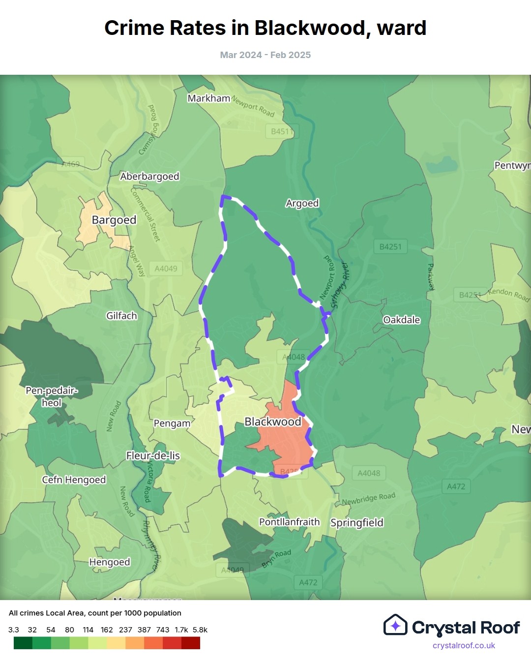 Blackwood, (ward) includes areas with the following crime ratings (see map):