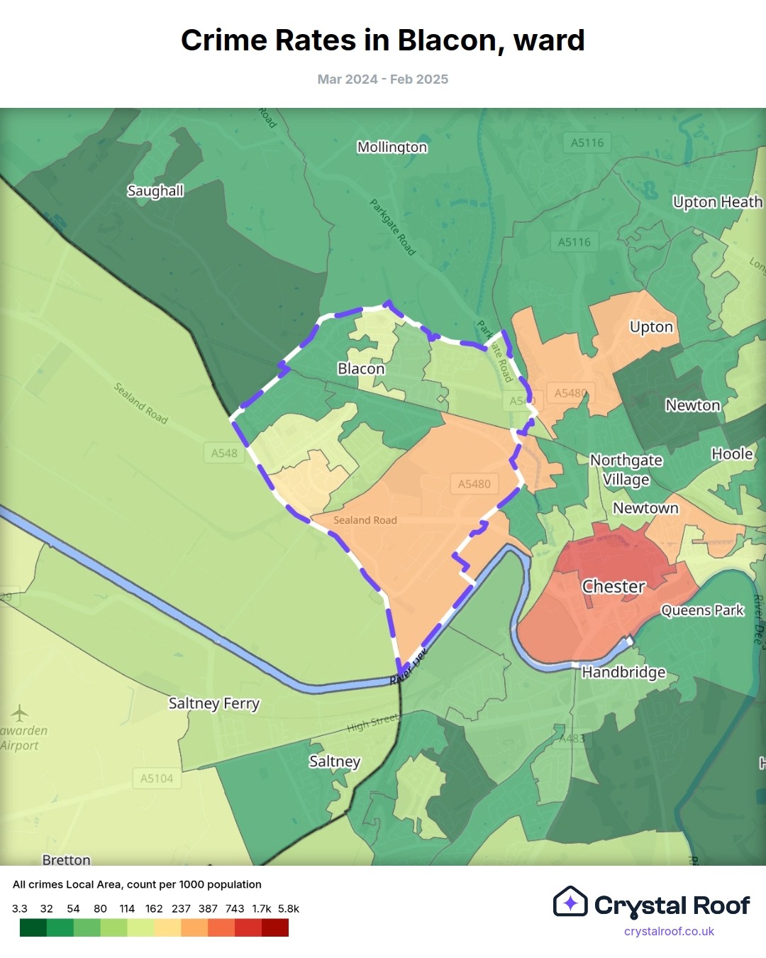 Blacon, (ward) includes areas with the following crime ratings (see map):