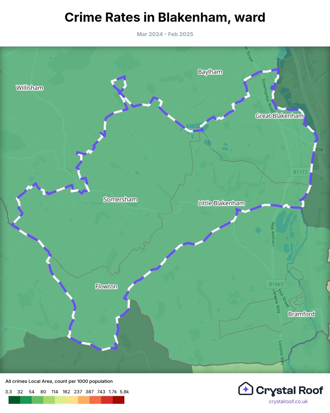 Blakenham, (ward) includes areas with the following crime ratings (see map):