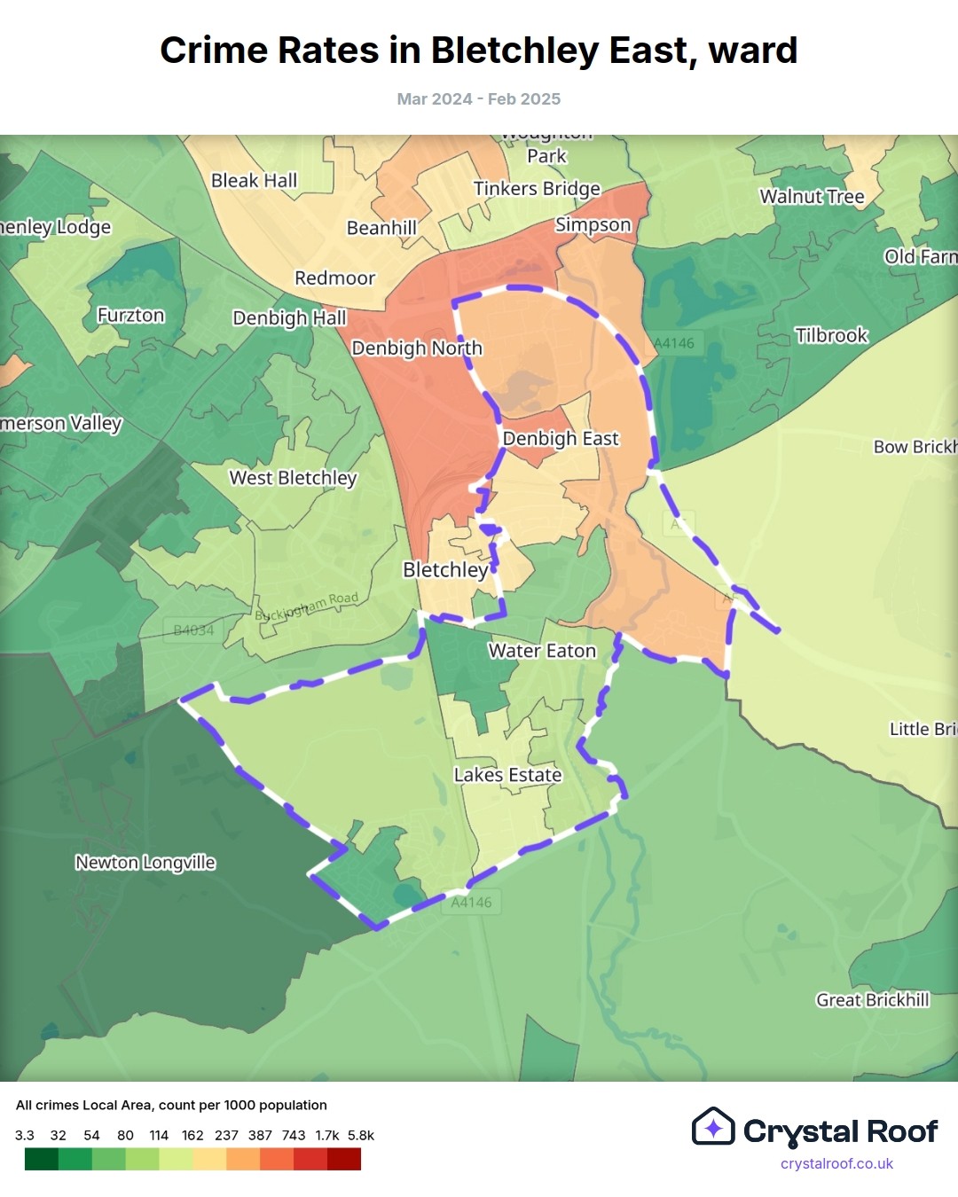 Bletchley East, (ward) includes areas with the following crime ratings (see map):