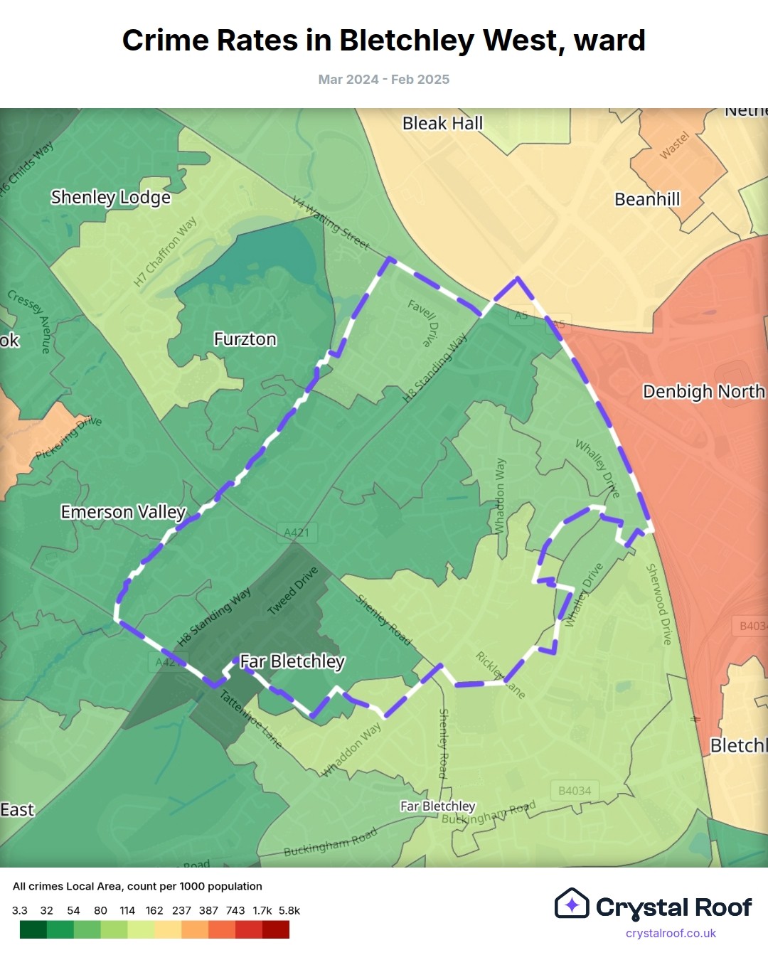 Bletchley West, (ward) includes areas with the following crime ratings (see map):
