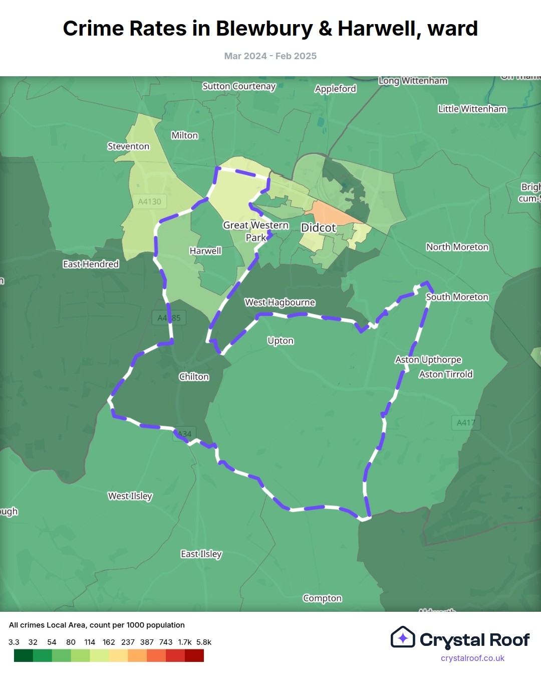 Blewbury & Harwell, (ward) includes areas with the following crime ratings (see map):