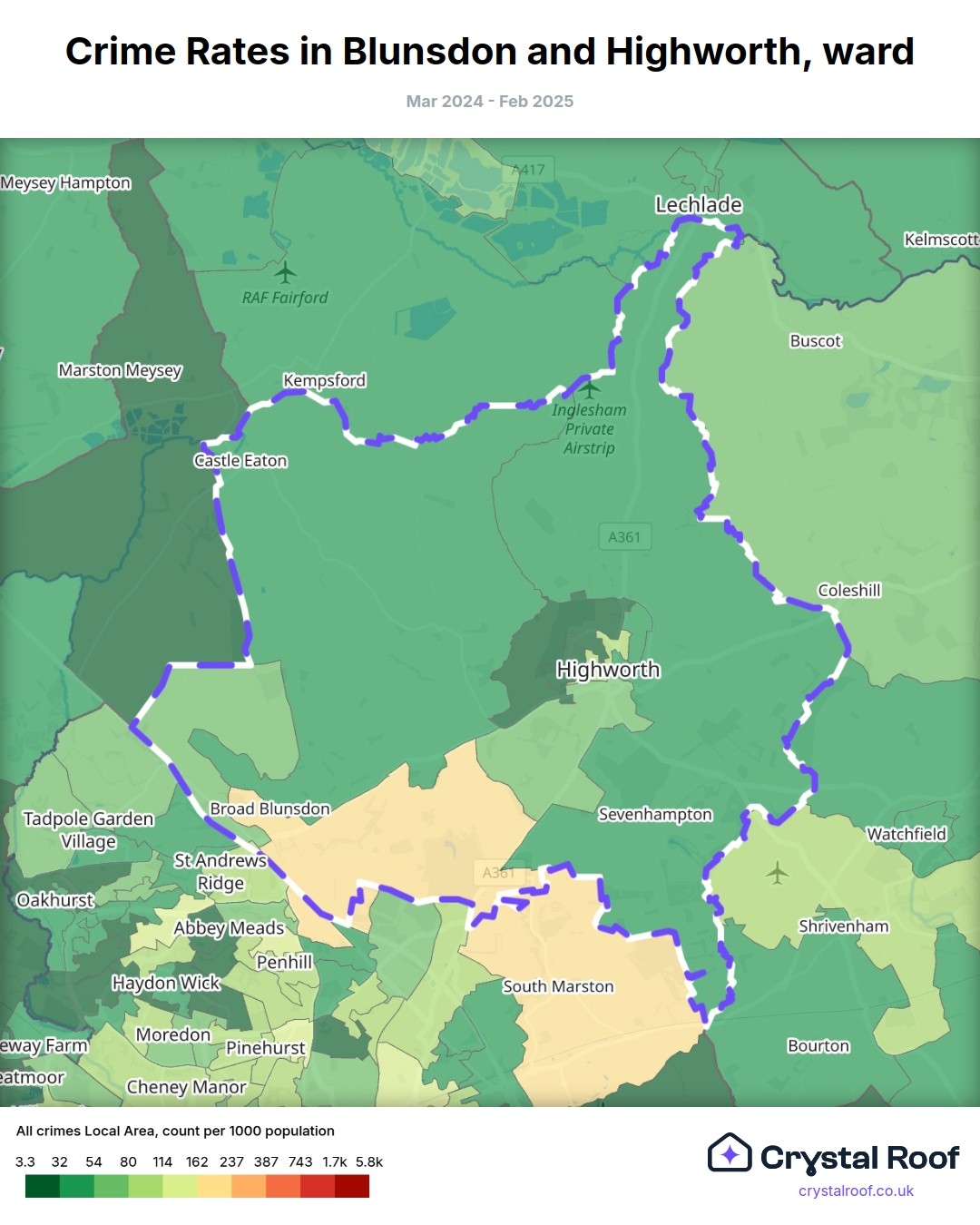 Blunsdon and Highworth, (ward) includes areas with the following crime ratings (see map):