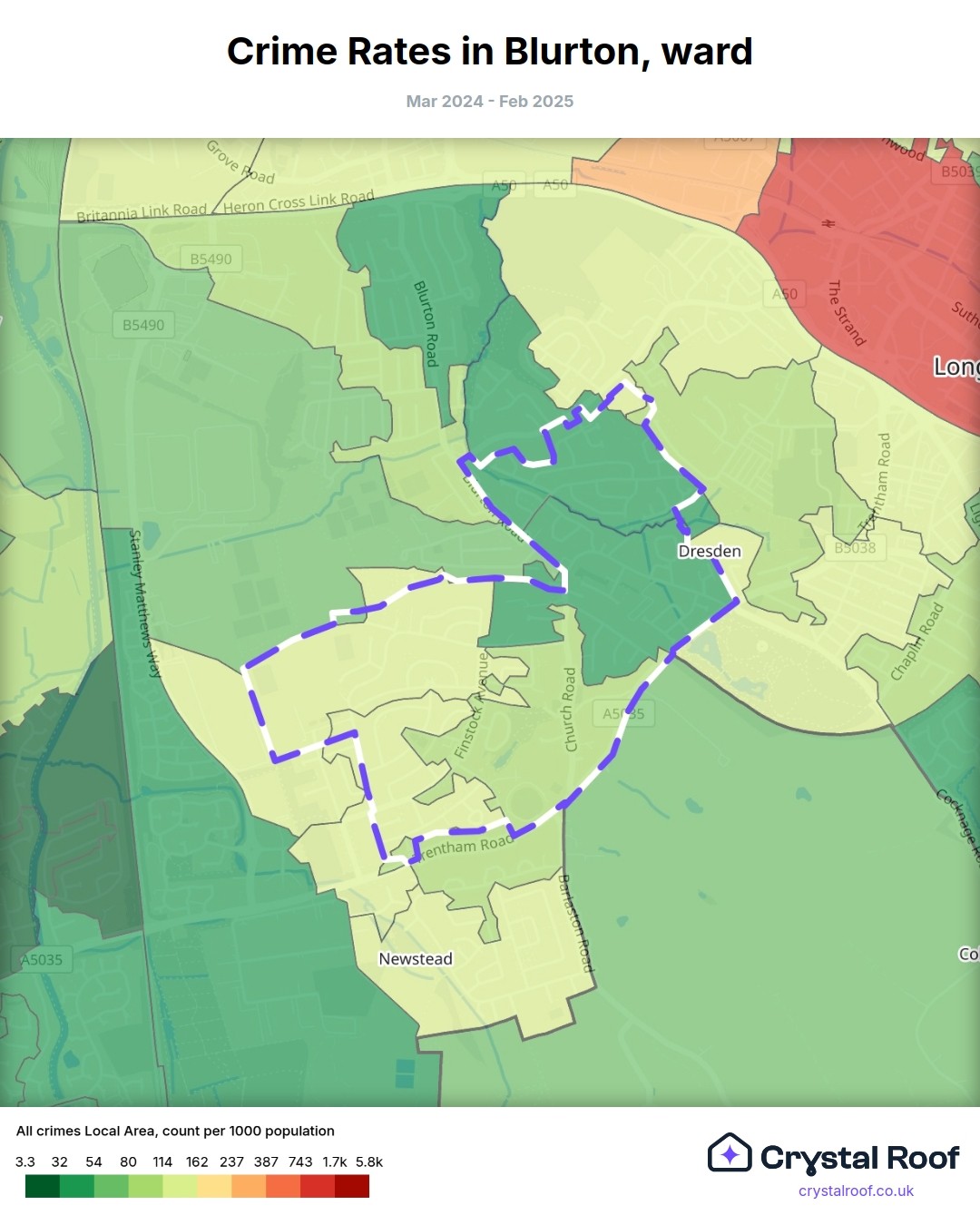 Blurton, (ward) includes areas with the following crime ratings (see map):