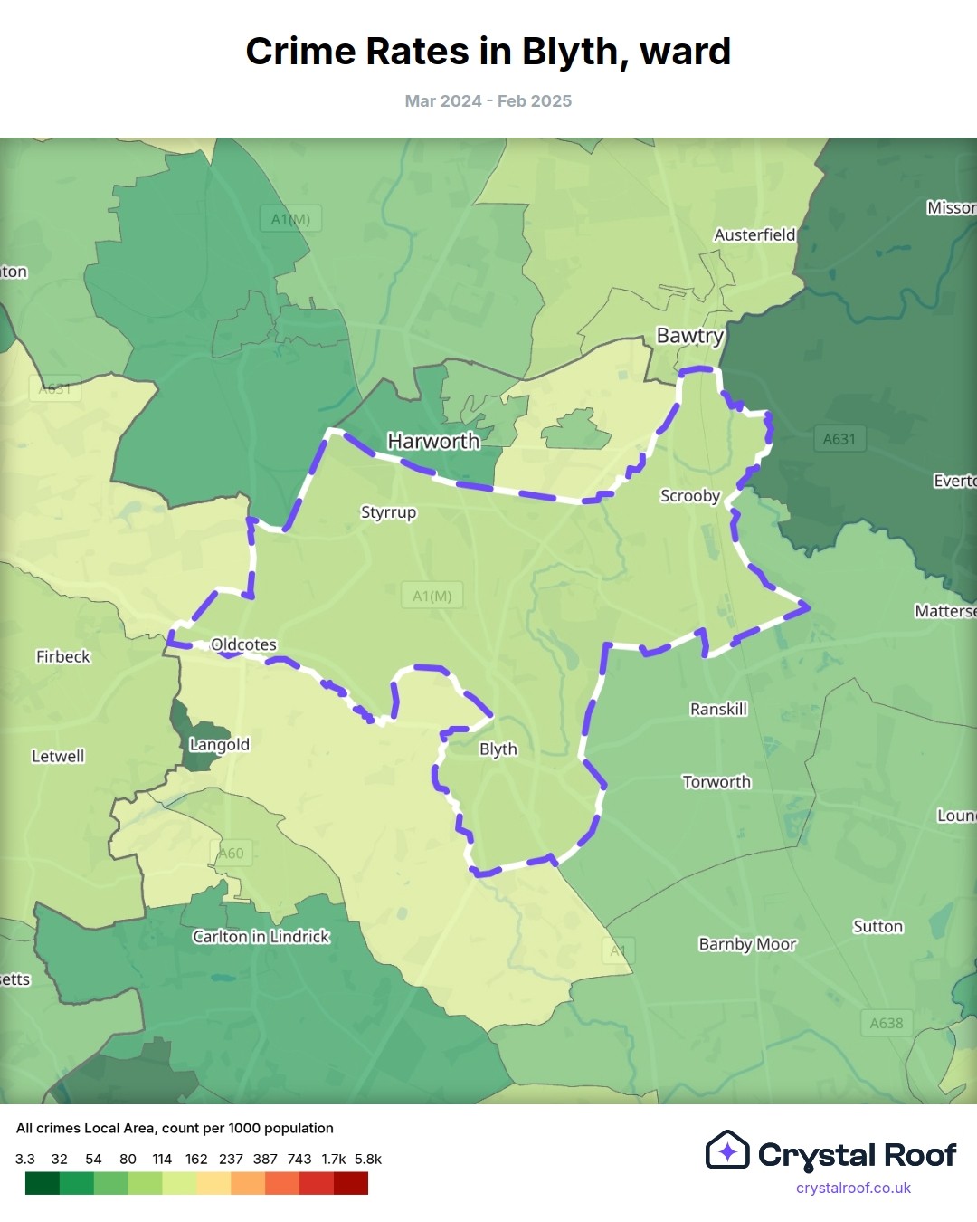 Blyth, (ward) includes areas with the following crime ratings (see map):