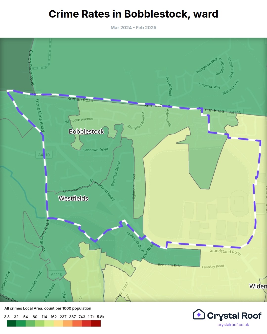 Bobblestock, (ward) includes areas with the following crime ratings (see map):